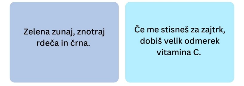 - Če me stisneš za zajtrk, dobiš velik odmerek vitamina C. (pomaranča)