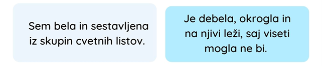 - Po prekli se pne, cveti in se vije, a ko dozori, se v srajčko skrije. (fižol)