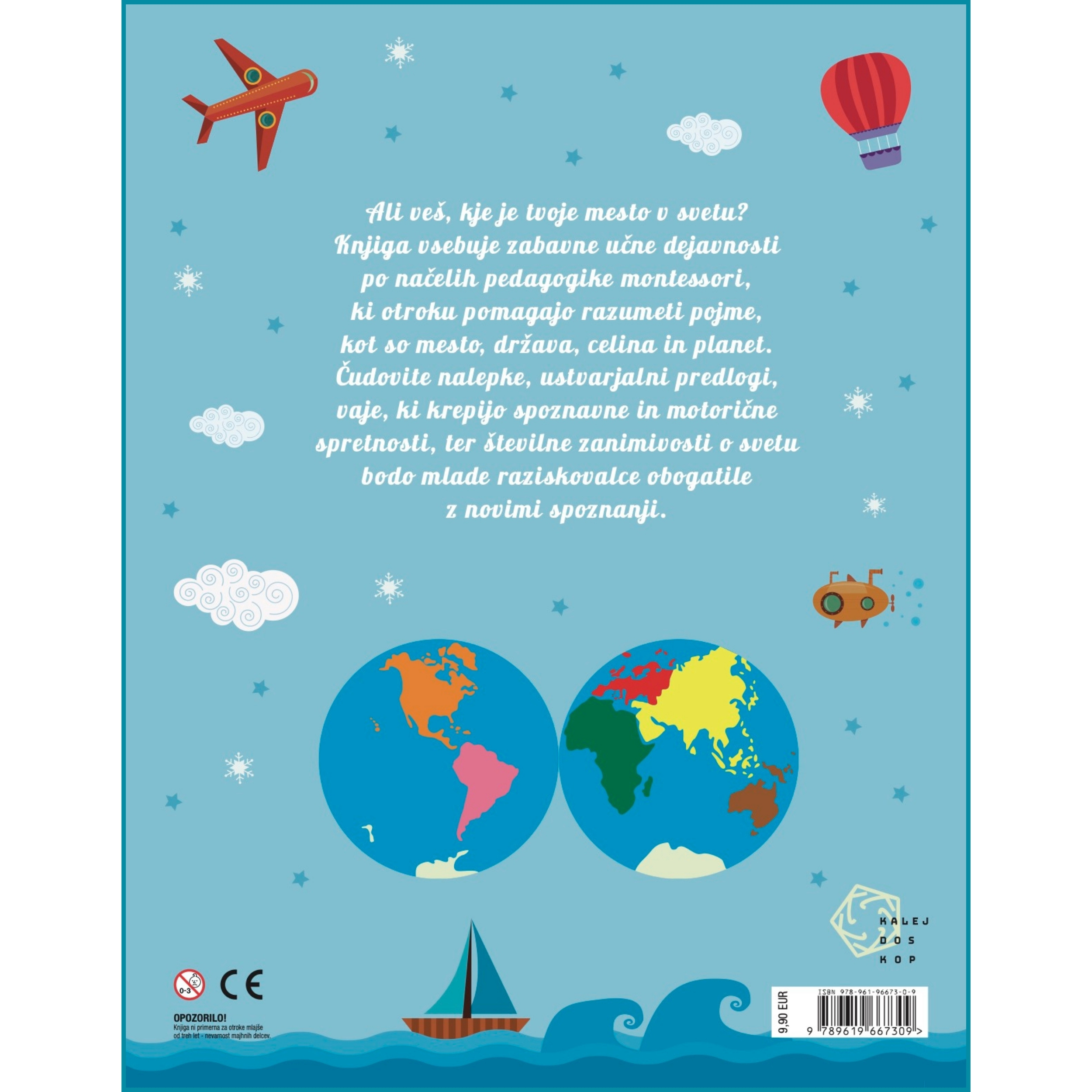 Ali veš, kje je tvoje mesto v svetu? Imenitna knjiga z nalogami in nalepkami vsebuje zabavne učne dejavnosti po načelih pedagogike montessori, ki otroku pomagajo razumeti pojme, kot so mesto, država, celina in planet. Čudovite nalepke, ustvarjalni predlogi, vaje, ki krepijo spoznavne in motorične spretnosti, ter številne zanimivosti o svetu bodo mlade raziskovalce obogatile z novimi spoznanji.