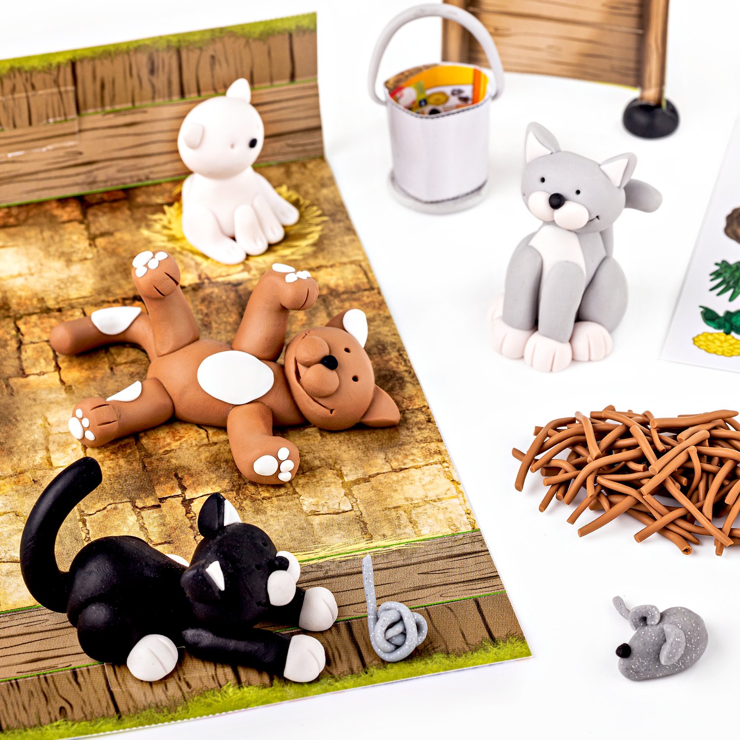 Komplet FIMO KIDS vsebuje štiri 42g modelirne mase, zelo mehke in enostavne za oblikovanje, kot takšne primerne za najmlajše ustvarjalce. Priložena so navodila za izdelavo figuric, ozadje in ena modelirka.