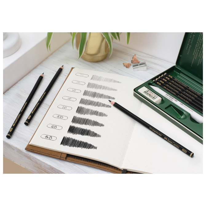 - Set vsebuje 2x grafitni svinčnik 2B, 8B, 2x jumbo svinčnik 2B, 8B, 2x grafitne akvarelne svinčnike 2B in 8B.