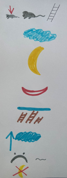 Ko se učenec uči pesem za deklamacijo, ni nujno, da gre le za učenje na pamet. Lahko si pomaga tako, da ob posamezne verze riše preproste sličice, ki ponazarjajo pomen besedila. Na ta način si ustvari “miselno pot” skozi pesem. Ob risbah lahko zgodbo tudi pripoveduje s svojimi besedami, išče povezave med verzi in razmišlja, kaj pesem sporoča. Tako se ne uči le zaporedja besed, temveč razume vsebino, kar mu omogoča bolj suvereno in smiselno deklamacijo.