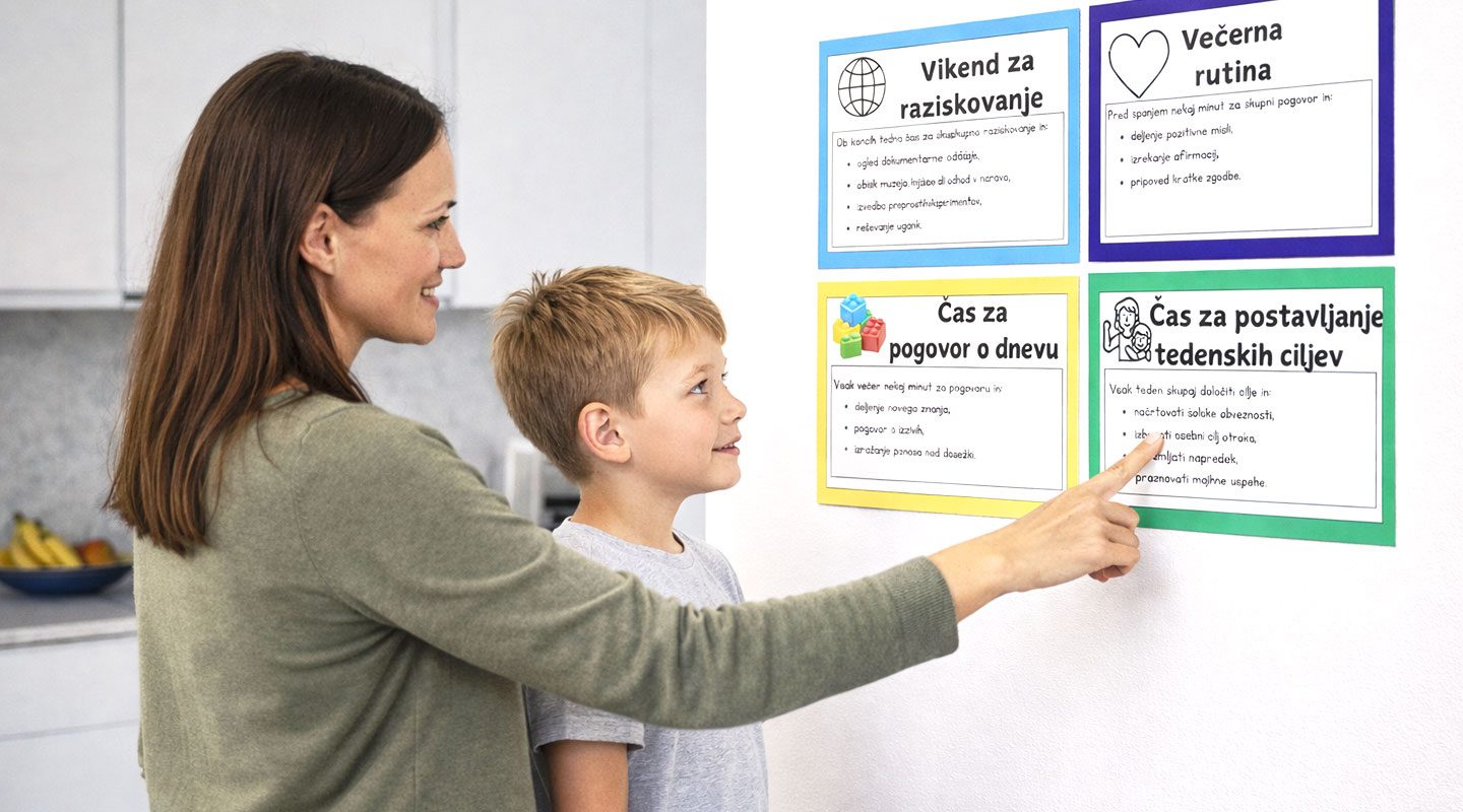 Starši imamo pri tem ključno vlogo kot zgled. Ko sami sledimo svojim obveznostim, smo organizirani in spoštujemo dogovorjene urnike, otroku pokažemo, kako načrtovanje in doslednost prispevata k bolj mirnemu in urejenemu življenju. Otroci se največ naučijo prav z opazovanjem vedenja odraslih.