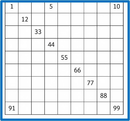 | Ob stotičnem kvadratu lahko dajemo otroku naslednja navodila: – Štej naprej od 34 do 48. – Štej po 3 naprej od 12 do 27. – Štej nazaj od 88 do 77. – Ugotovi, katero število je pokrito. – Povej, katero število je pred številom 27 in katero za njim. – Postavi pravo število na prazno mest. Navodila dajemo mi otoku in nato on nam. | ![]() |