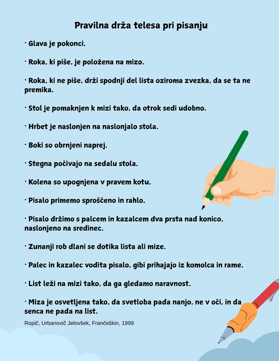 - Roka se počasneje utrudi in otrok lahko piše dlje.